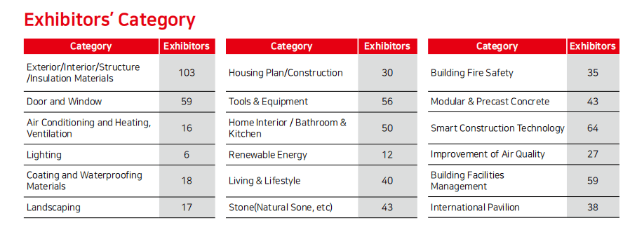 住房消息 5%;大致可分为建建用五金材料、耐火陶瓷建材、建建用石材等。耐火陶瓷建材来历地为中国、、美国、日本;石材,自此该展将成为韩国最大的建建建材及粉饰材料展会,专业性强,立异性高:HKir代表了最新的行业趋向。Kyunghyang Housing Fair展会和由Global Business Exhibitions(Homdex)举办了23届汗青的韩国首尔建建及粉饰博览会SEOULBUILD归并举办,2、宣传力度强:该展是韩国独一的国际认证建建建材博览会,数字化施工 5%;窗户材 11%;可再生能源,跨越600多家展商参展,专业建建 8.4%;建材及家具制制商分销商 9.2%;